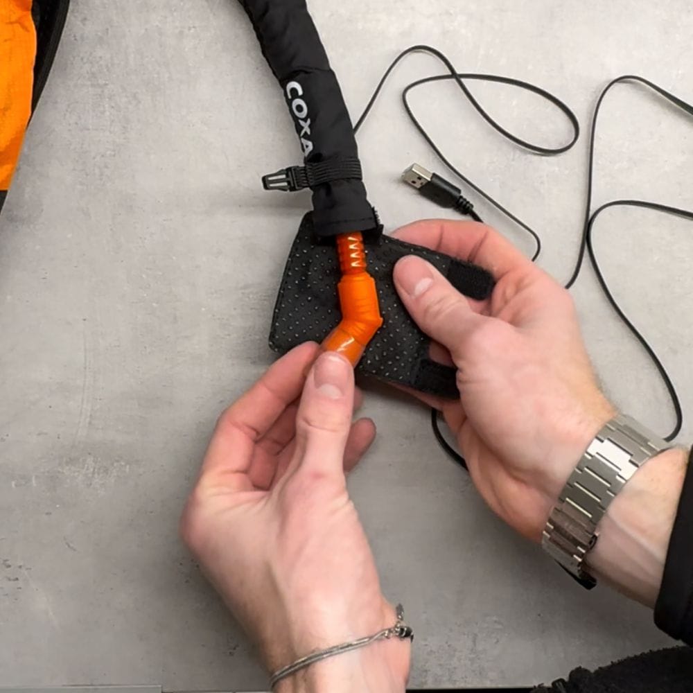 Fäst kabeln på utsidan av slangen med hjälp av kardborre-straps som medföljer.